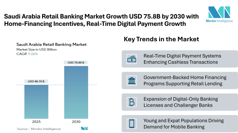 Saudi Arabia Retail Banking Market to Reach USD 75.8 Billion by 2030 with Home-Financing Incentives and Real-Time Digital Payment Growth